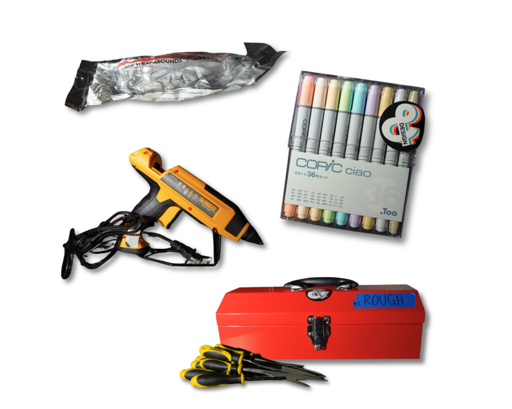 – Copic markers, pencils, pens, and paper